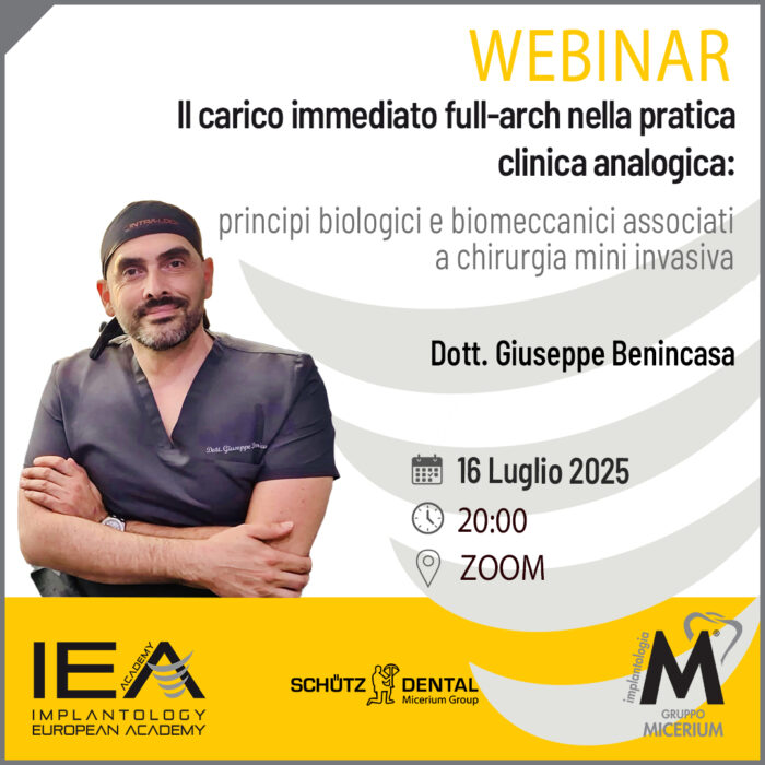Webinar IEA-Italia — Il carico immediato full-arch nella pratica clinica analogica: principi biologici e biomeccanici associati a chirurgia mini invasiva